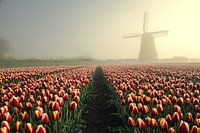 Op deze ochtend van de 23ste april 2025 was de mist een beetje erg hardnekkig. Ik stond daar al om 06.00 uur , maar voor ik de molen een beetje kon zien was het rond 08.00 uur en dan moest ik er nog wat dichter op gaan zitten ook. Het geeft wel mooie sfeer beelden , storende objecten op de achtergrond vallen weg . En ik kon wel veel composities proberen omdat de mist zo lang hangen bleef.