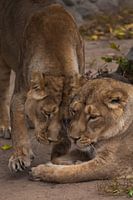 twee kattenmeisjes vriendin. Leeuwinnetje is een grote roofzuchtige sterke en mooie Afrikaanse kat.