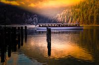 Een stille de winterochtend in Konigsee in Berchtesgadener Land, Beieren