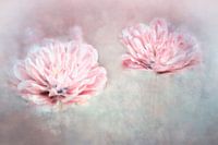 Twee tulpen van een speciale soort. Bloemkelken gevuld met bloemblaadjes, zacht romantisch in delicate pastelkleuren