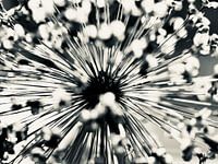 zwart wit van uitgebloeide bloem, ui plant mooie bolvorm met structuren van de bloem nu goed te zien.