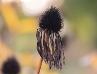 close up van een uitgebloeide zonnehoed, met een kleurige bokeh achtergrond