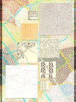 collage van vierkanten op een gestippelde achtergrond van kleurpotlood