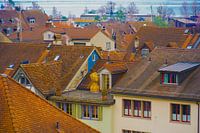Het uitzicht over de daken vanaf het kasteen in Rapperswil.
