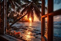 uitzicht uit het raam op het tropische strand