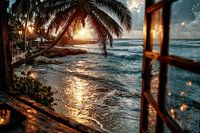 uitzicht uit het raam op het tropische strand
