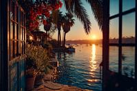 uitzicht uit het raam op het tropische strand
