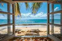 digitaal beeld van uitzicht uit het raam op een tropisch strand