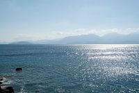 uitzicht over de zee een baai in Agios Nikolaos, Kreta. Met bergen op de achtergrond