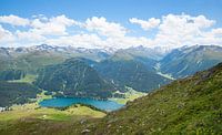 uitzicht vanaf Parsenn wandelroute naar meer Davoser See en Rhätische alpen, Zwitserland