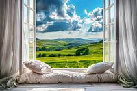 uitzicht vanuit het raam op een prachtig landschap