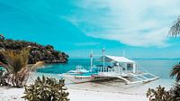 instant vakantiegevoel bij deze foto, een prachtige boot in een prachtige baai op een prachtig eiland, wat wil je nog meer.