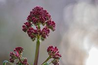 close up van de bloem van een valeriaan, met een lichtgrijze bokeh achtergrond