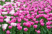 veld met tulpen in volle bloei