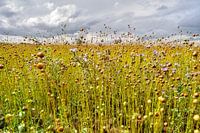 rondkijken in een vlasveld op het platteland...de karakteristieke knoppen zijn goed zichtbaar en hier en daar bloeit een bloem van een andere soort...