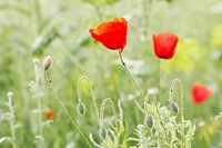 veldboeket van rode klaprozen tegen lichte achtergrond