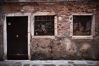 venetiaans huisje met kerstversiering. Vervallen voorkant van huis in Venetie.