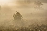mist verbergt het landschap op een herfstochtend op de brunssummerheide