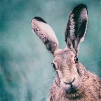 een schattige haas kijkt in de camera met een vraagtekenende blik...