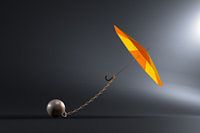 Een geketende paraplu streeft naar vrijheid.