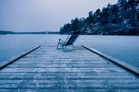 Je vraagt je af waar de persoon is die het stoeltje heeft neergezet. Het is donker, het is koud... Komt er nog iemand terug?