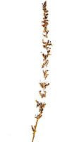 vangt een moment van pure verstilling in het winterlandschap. Een ranke, verdorde stengel rijst recht omhoog tegen een zachte, bijna lege achtergrond. De broze bladeren en zaadrestanten dragen subtiele sporen van sneeuw, alsof de natuur zelf even de adem inhoudt. De verticale lijn snijdt door de ruimte en creëert…