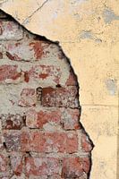 vervallen afbladderend pleisterwerk op de oude verweerde bakstenen gevel van een vervallen afgekeurd huis in de stad Maagdenburg in Duitsland