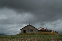Vervallen schuur in Montdore Frankrijk onder prachtig dreigende lucht