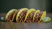 Koop dit digital art kunstwerk vier taco's van de-nue-pic als reproductie op canvas, aluminium dibond, (ingelijste) fotoprint, behang en ArtFrame, op maat geprint in Fine-Art kwaliteit.