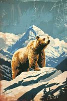 Deze prachtige illustratie brengt de majestueuze kracht van de beer en de ongerepte schoonheid van de bergen samen. De warme bruintinten van de beer contrasteren met de koele blauwtinten van de besneeuwde bergtoppen, waardoor een gevoel van diepte en sereniteit ontstaat. Het vintage karakter van de print voegt een vleugje nostalgie toe, waardoor het een perfect kunstwerk is voor zowel moderne als klassieke interieurs.