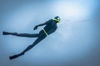 Deze vlieger maakt in combinatie met de lucht een illusie dat je naar een onderwaterduiker kijkt .