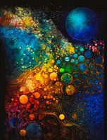 Een abstract schilderij vol dynamische vormen en kleuren is een visueel feest voor de ogen en biedt een zintuiglijke ervaring die rechtlijnige interpretatie tart. Het doek is een levendige speeltuin waar geometrische en organische vormen dansen en op elkaar inwerken, waardoor een gevoel van beweging en diepte ontstaat. Gedurfde, verzadigde kleuren botsen en harmoniëren op onverwachte manieren, waardoor de waarneming en emoties van de kijker worden uitgedaagd. Door de afwezigheid van herkenbare figuren of objecten worden de vormen en kleuren zelf het onderwerp, wat uitnodigt tot meerdere lagen van betekenis en interpretatie. Over het geheel genomen dient het schilderij als een verkenning van vorm, kleur en emotie, waarbij traditionele artistieke grenzen worden overschreden om een viscerale reactie op te roepen.