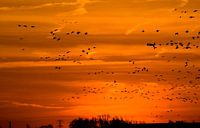 Bij zonsopkomst kun je zwermen vogels op zien vliegen boven de polder , worden ze net wakker? Zit er een vos?