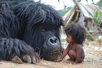 vriendschap tussen mens en dier,groot en klein .Kunstmatige intelligentie dus niet bestaande personen.