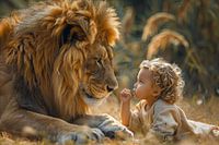 vriendschap tussen mens en dier,groot en klein .Kunstmatige intelligentie dus niet bestaande personen.