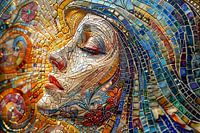 mozaiek kunstwerk gemaakt met kunstmatige intelligentie van zijprofiel van een vrouw portret