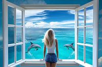 fantasiebeeld van uitzicht over een blauwe zee met wolkenlucht