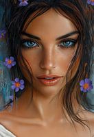 schilderachtig digitaal fictief portret van vrouw met bloemen in metropolitan stijl