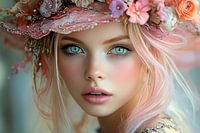 schilderachtig fotografisch beeld van fictieve vrouw met bloemen