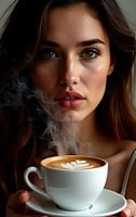 Koop de foto vrouw met hete kop Cappuccino van Egon Zitter op canvas, aluminium dibond, (ingelijste) fotoprint, behang en ArtFrame, op maat geprint in Fine-Art kwaliteit.