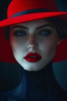 grafisch ai beeld van modieuze vrouw met klasse,stijl en elegantie grote hoed tegen een zwarte achtergrond