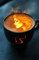 Fotorealistisch beeld van warme kop koffie met vrouwspersoon afbeelding