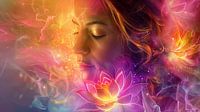Digitale schilderachtige spirituele afbeelding van fictieve vrouw met lotusbloemen