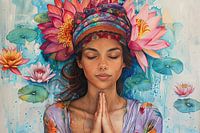 Digitale schilderachtige spirituele afbeelding van fictieve vrouw met lotusbloemen