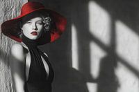 Fashion model fotografie portret in zwart wit met rode accenten