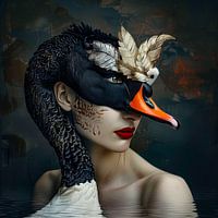 kunstzinnig digitaal beeld van een vrouw samen met een zwaan met egale achtergrond en studioverlichting