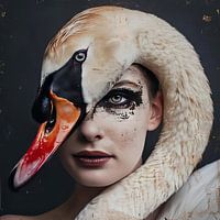 kunstzinnig digitaal beeld van een vrouw samen met een zwaan met egale achtergrond en studioverlichting