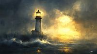 Laat je betoveren door de diepte van de blauwe golven en de krachtige uitstraling van de vuurtoren.