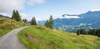 mooie wandelroute van Murren naar Grutschalp zwitserland alpen Berner Oberland. groene weide met roze vuurkruid