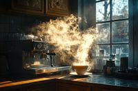 digitaal beeld van warm kopje cappuccino of koffie thuis of in een horecagelegenheid